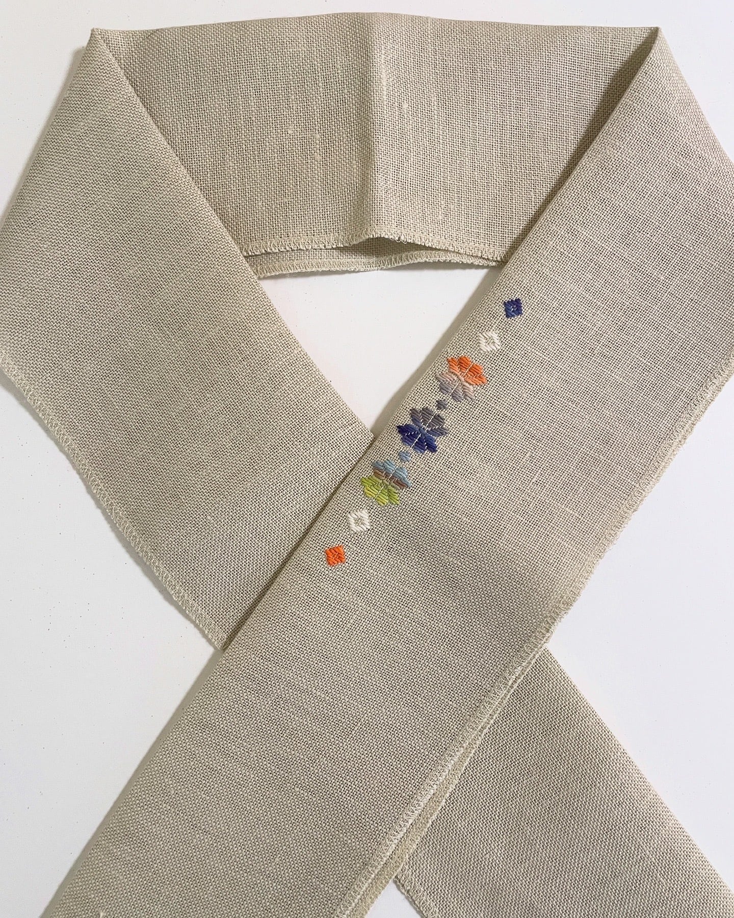 【受注販売】リネンのこぎん刺し半衿(梅の花)