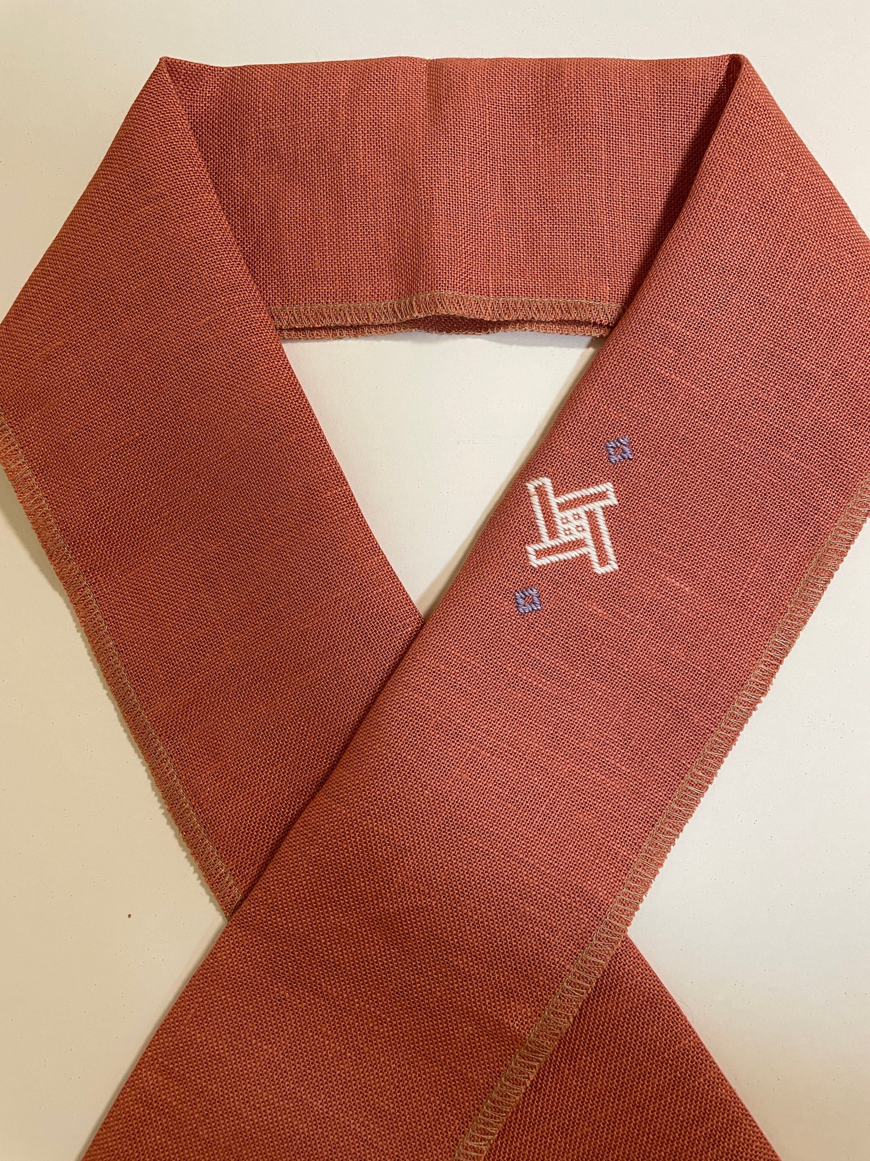 【受注販売】リネンこぎん刺し半衿(風車)レンガ